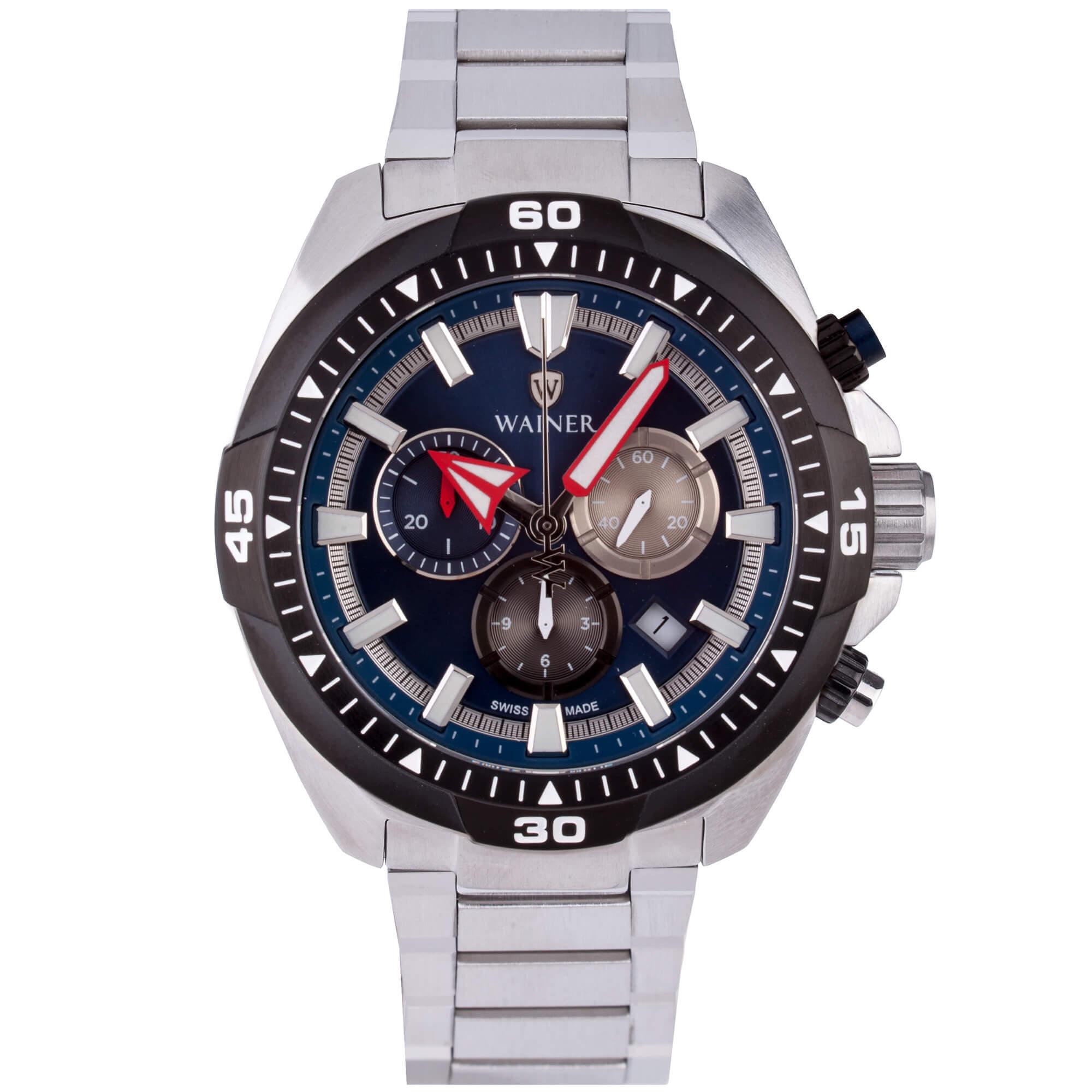 Мужские часы Wainer WA.15559-C – это спортивная модель с классическим круглым корпусом диаметром 45 мм, выполненным из прочной нержавеющей стали. Такой размер обеспечивает удобное считывание показаний и подходит для активного образа жизни, а стальной корпус гарантирует долговечность и устойчивость к ежедневным нагрузкам. Кварцевый механизм RONDA 5040D отвечает за точность хода и надежность, что исключает необходимость частой подзаводки и делает часы практичным выбором для тех, кто ценит стабильность.